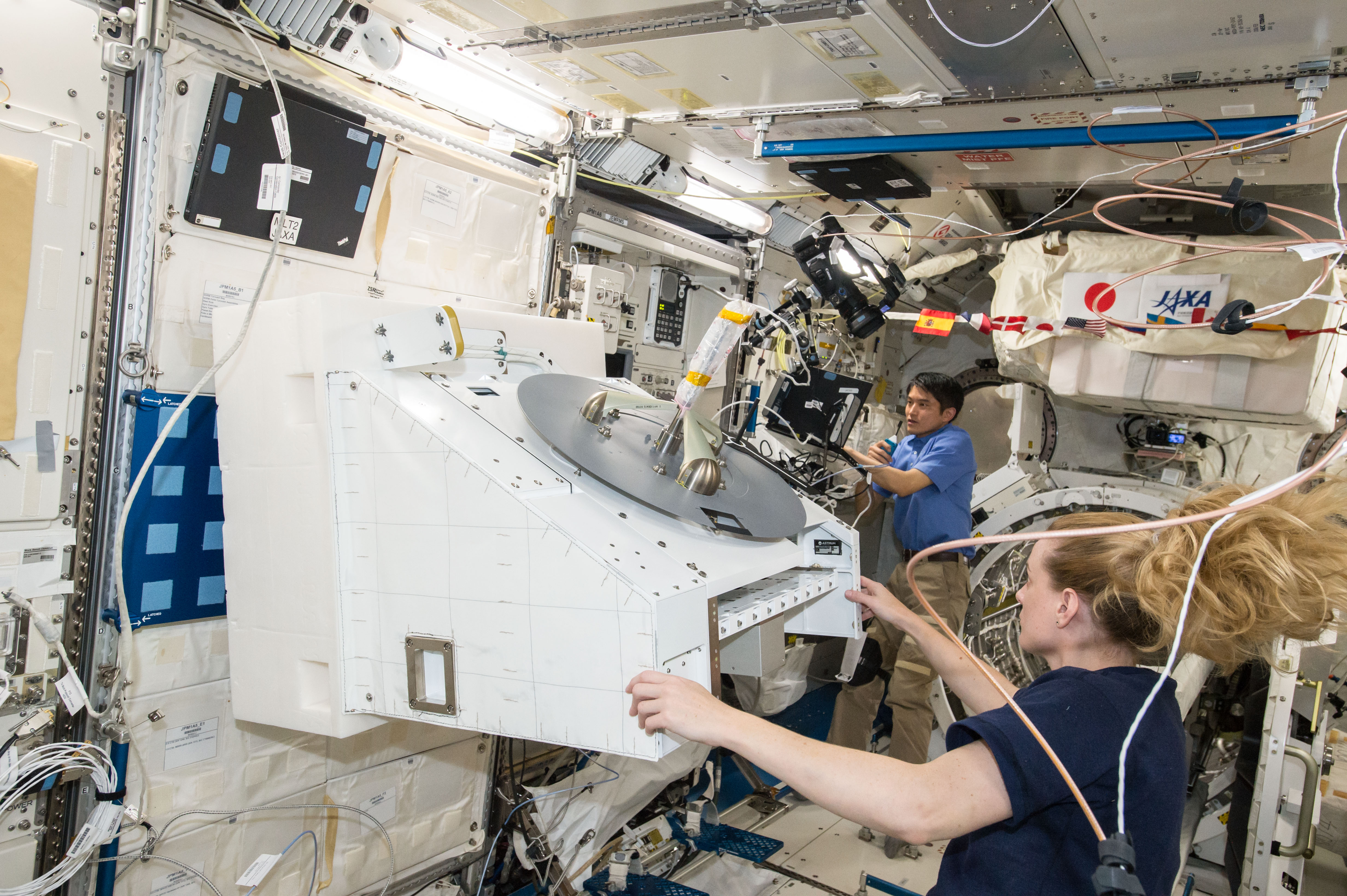 Once Hēki is installed in the NREP structure, the NREP will be placed on the “slide table” for the Japanese External Module (JEM) airlock for deployment to the exterior of the ISS. The JEM is managed by the Japan Aerospace Exploration agency, JAXA.
