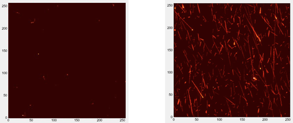 Image: radiation detector 10 second data acquisition during ground test (left) compared to radiation detector 10 second data acquisition in flight (right). Radiation “hits” appear as bright spots in the images. This clearly illustrates the radiation shielding provided by the Earth’s atmosphere and, to a lesser extent, magnetic field (the ISS is inside part of the Earth’s magnetic field so gains some of the benefit compared to deep space).